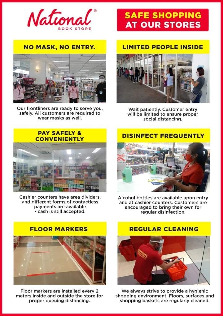 Whether you visit our branches, shop from home via Text to Order and Chat to Shop, or shop online on our website and our stores on Shopee and Lazada, you can safely and easily find everything you need from National Book Store.